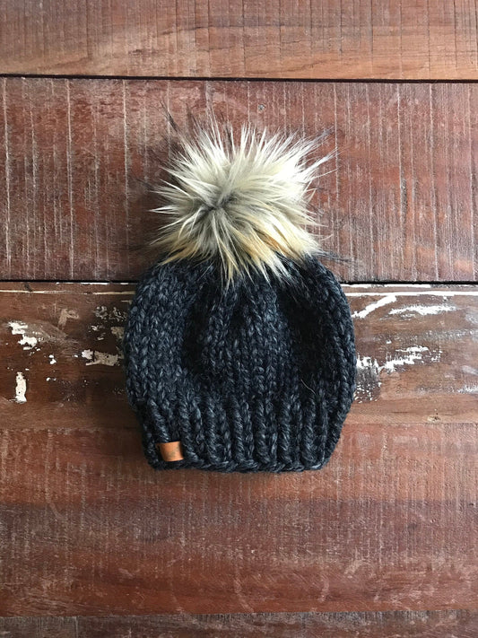Baby Boy Knit Hat with Pom Pom | Custom Chunky Baby Beanie | 3-to-6 Months