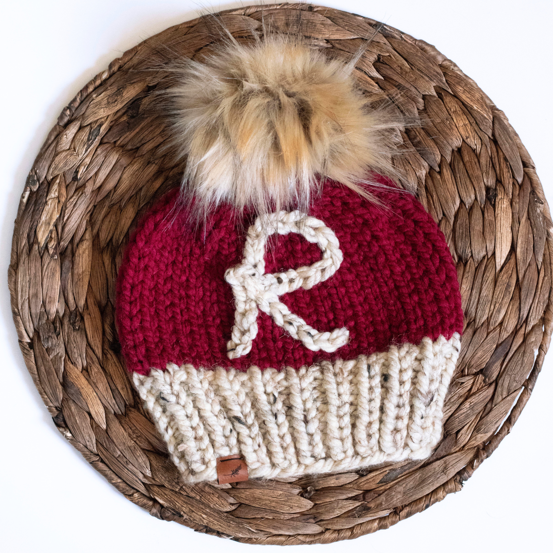 My bestselling classic knit Santa hat with a custom hand embroidered initial! The chunky knit beanie with a faux fur pom pom features a hand embroidered initial on the front of hat! A meaningful holiday baby shower gift and a great idea as a Christmas themed photo shoot prop for kids or baby.