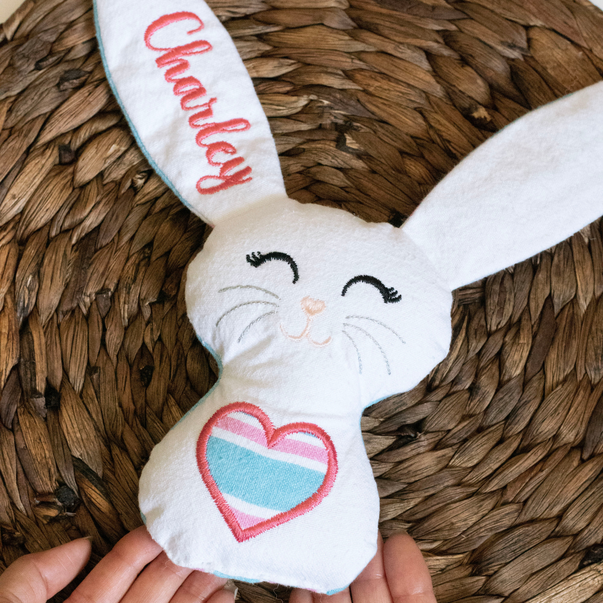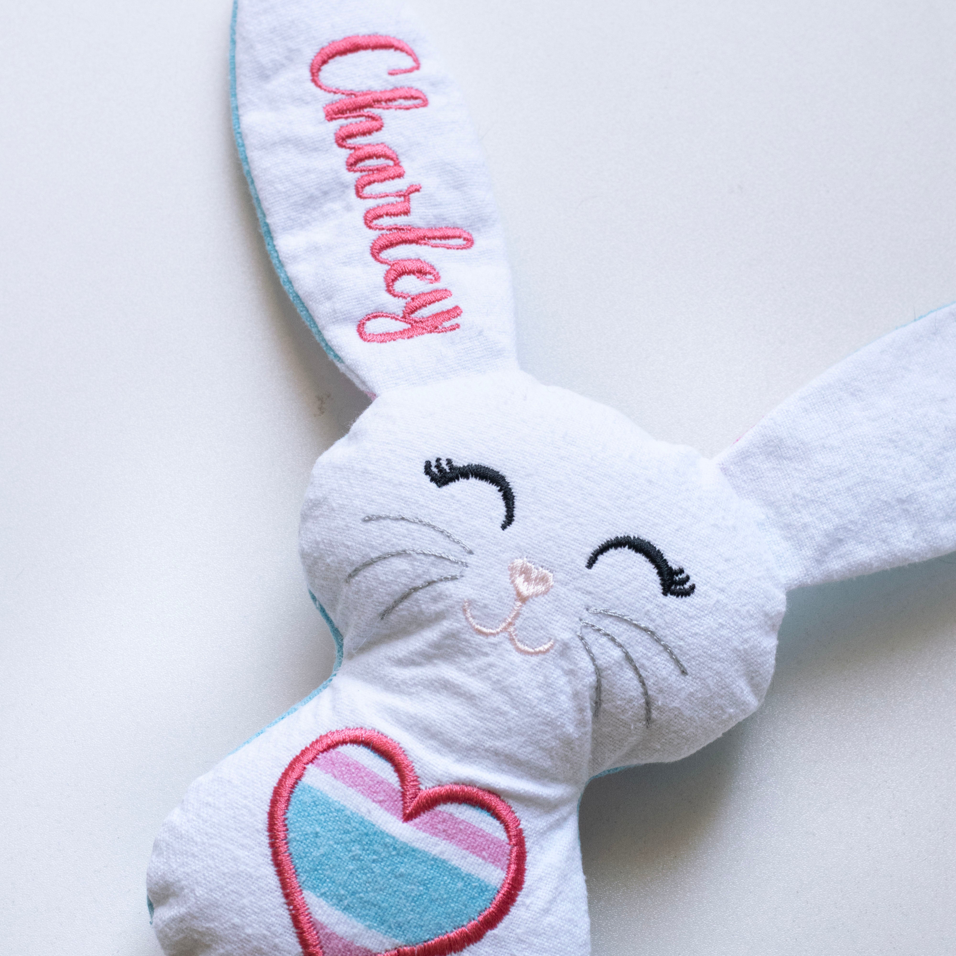 Bunny - Body Width at widest point 4.5 inches / Body Height 6 inches / Length of ears 4.75 inches