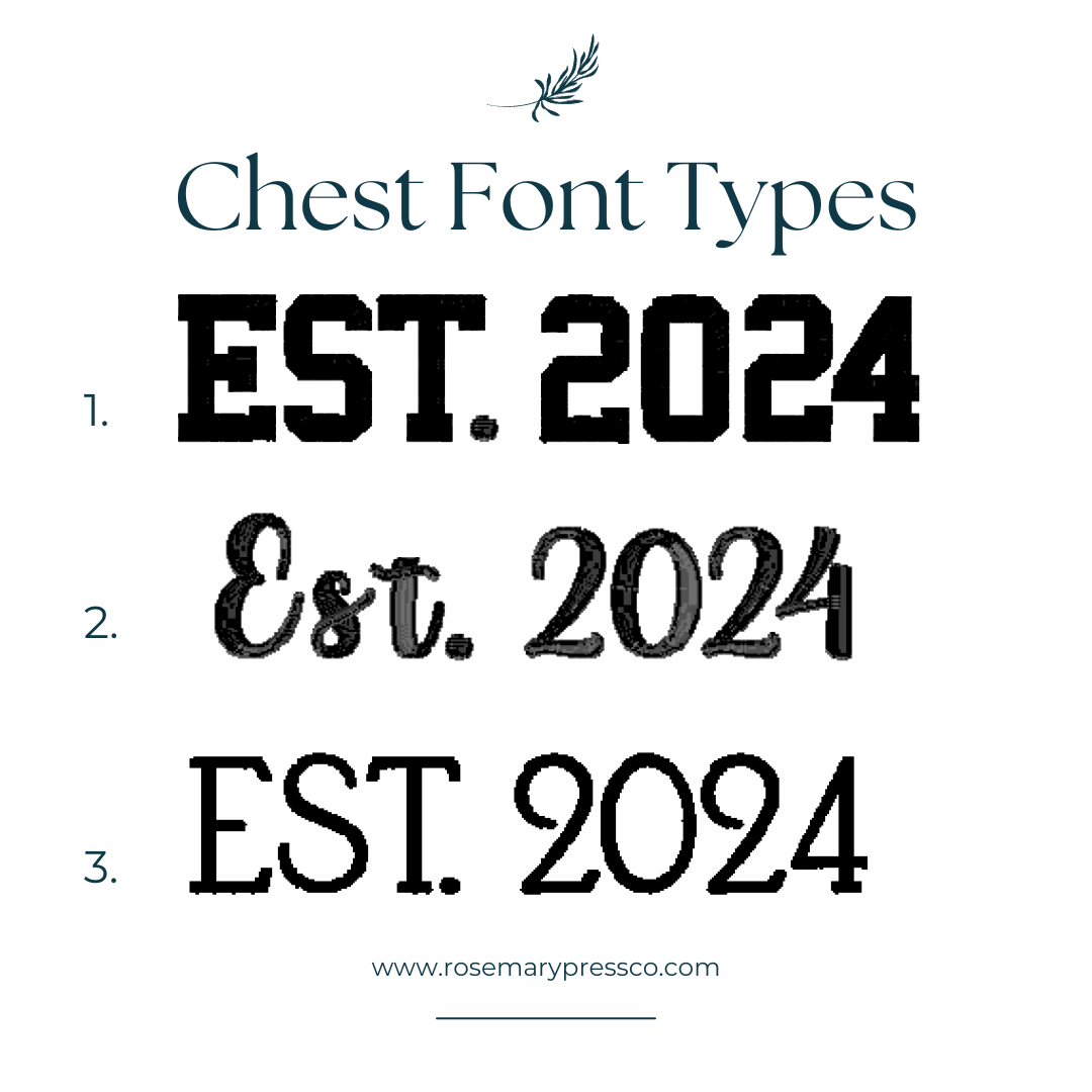 4) Year of parenthood (ex. Est. 2025) - see photos for font options