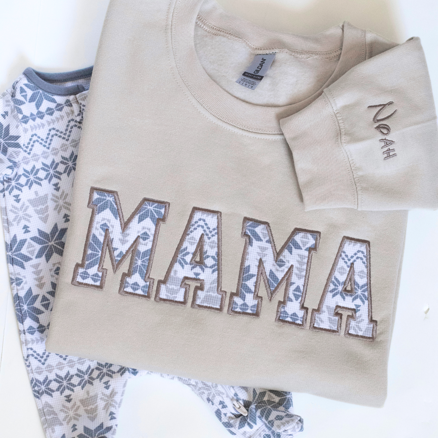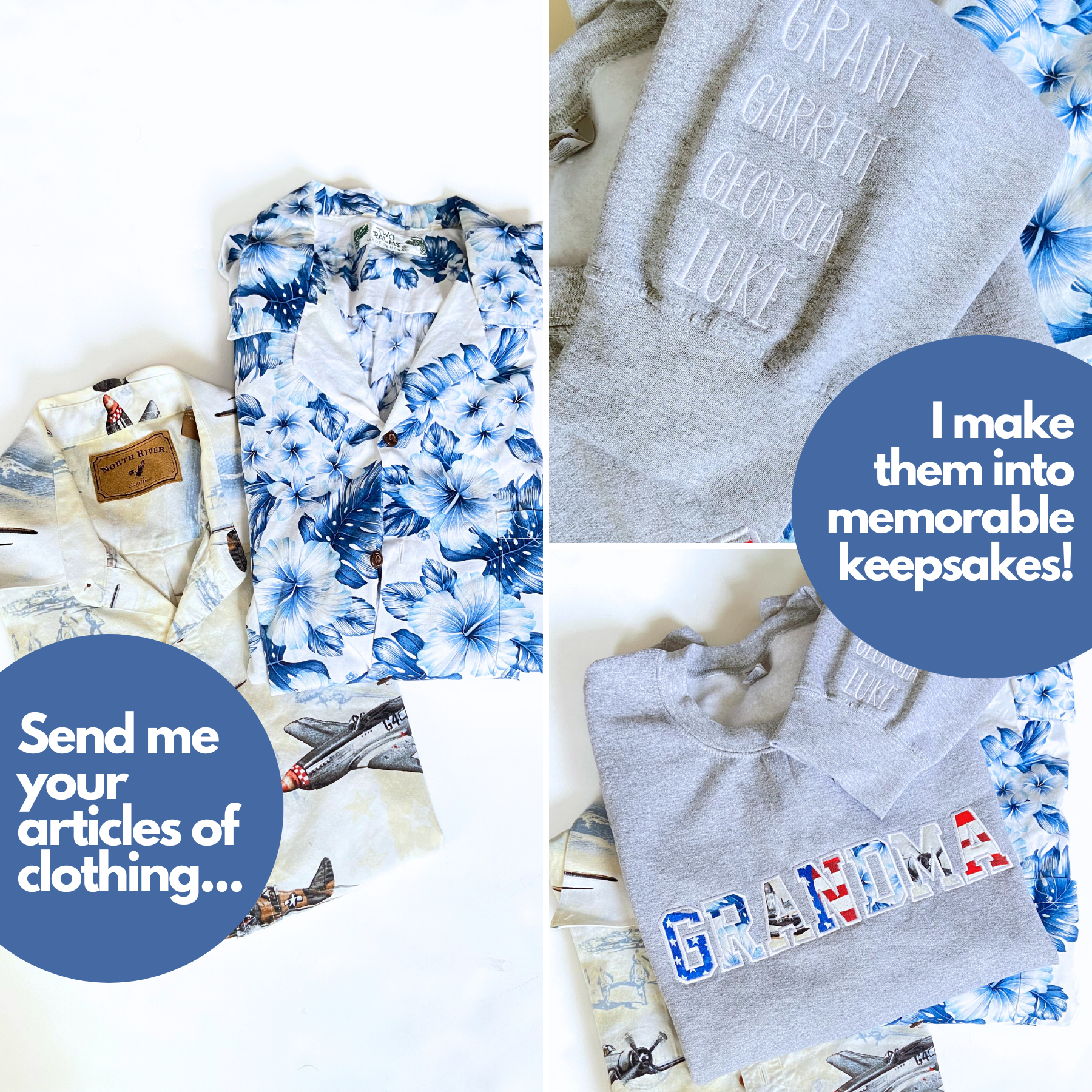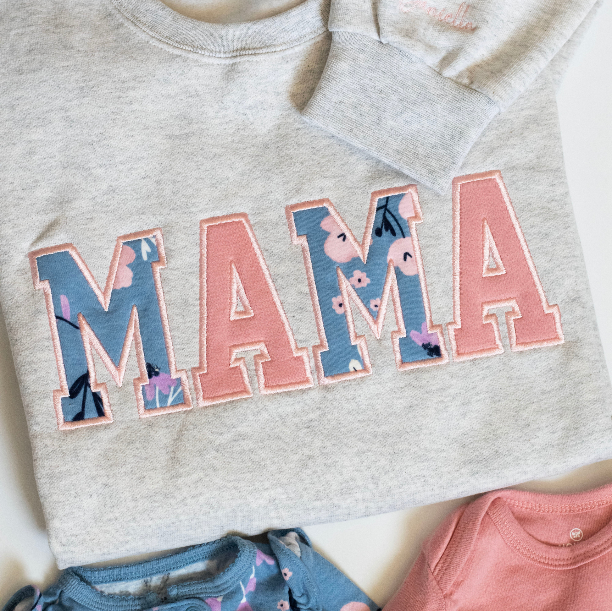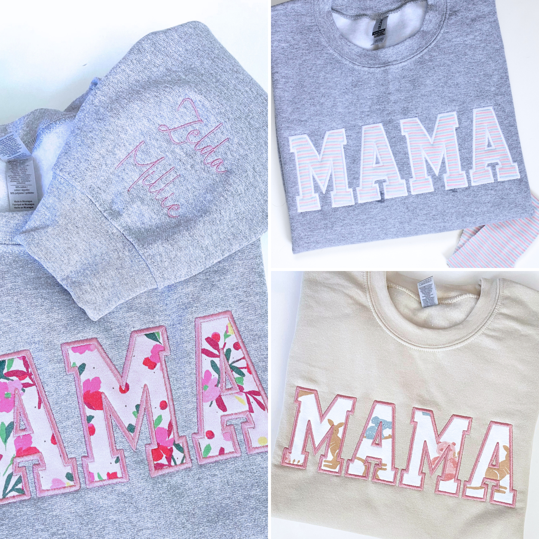 A meaningful gift idea for mothers or other loved ones who cherish and want to memorialize precious moments, my Keepsake Personalized Embroidered Sweatshirt features an appliqué embroidery design where you get to choose the article of clothing that can be up-cycled to create a unique keepsake MAMA sweatshirt or a custom keepsake sweatshirt! Made-to-order with a professional embroidery machine, the word "MAMA" (or other custom word) is embroidered across the chest of a soft cotton-poly blend pullover sweater, with high quality embroidery thread in a beautiful satin stitch! The sweater and embroidery appliqué design are of greatest quality and durability you can expect from my shop! This custom MAMA sweater can also be embroidered with optional names on the sleeves (additional cost).
