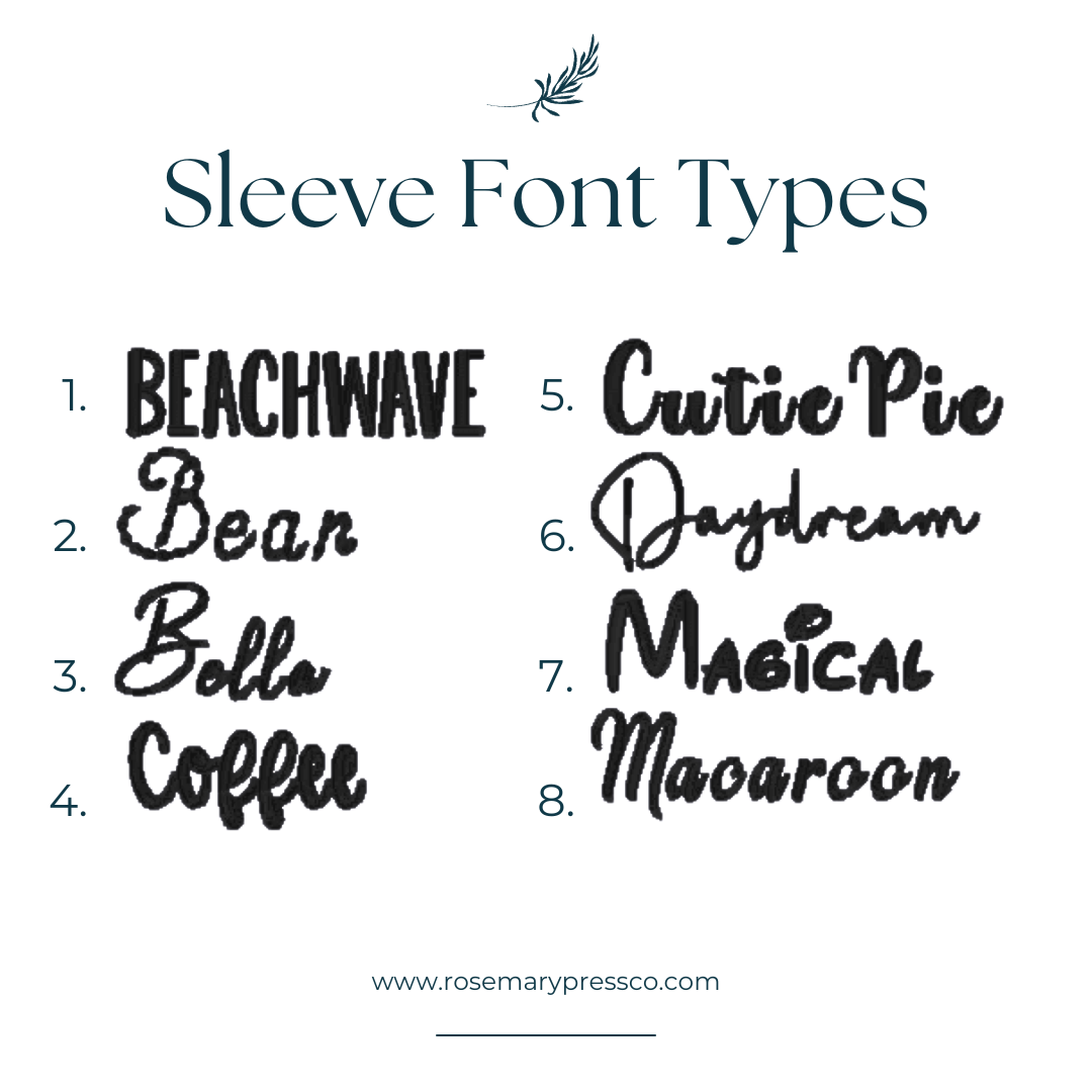 4) Optional: Names on Sleeves if selected (up to 12 characters each)