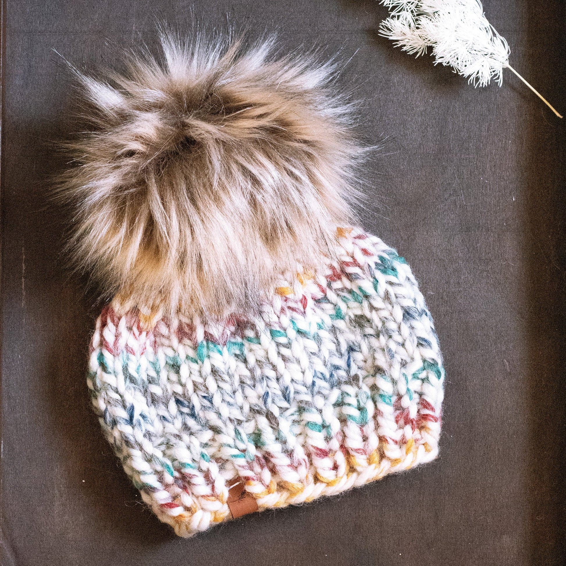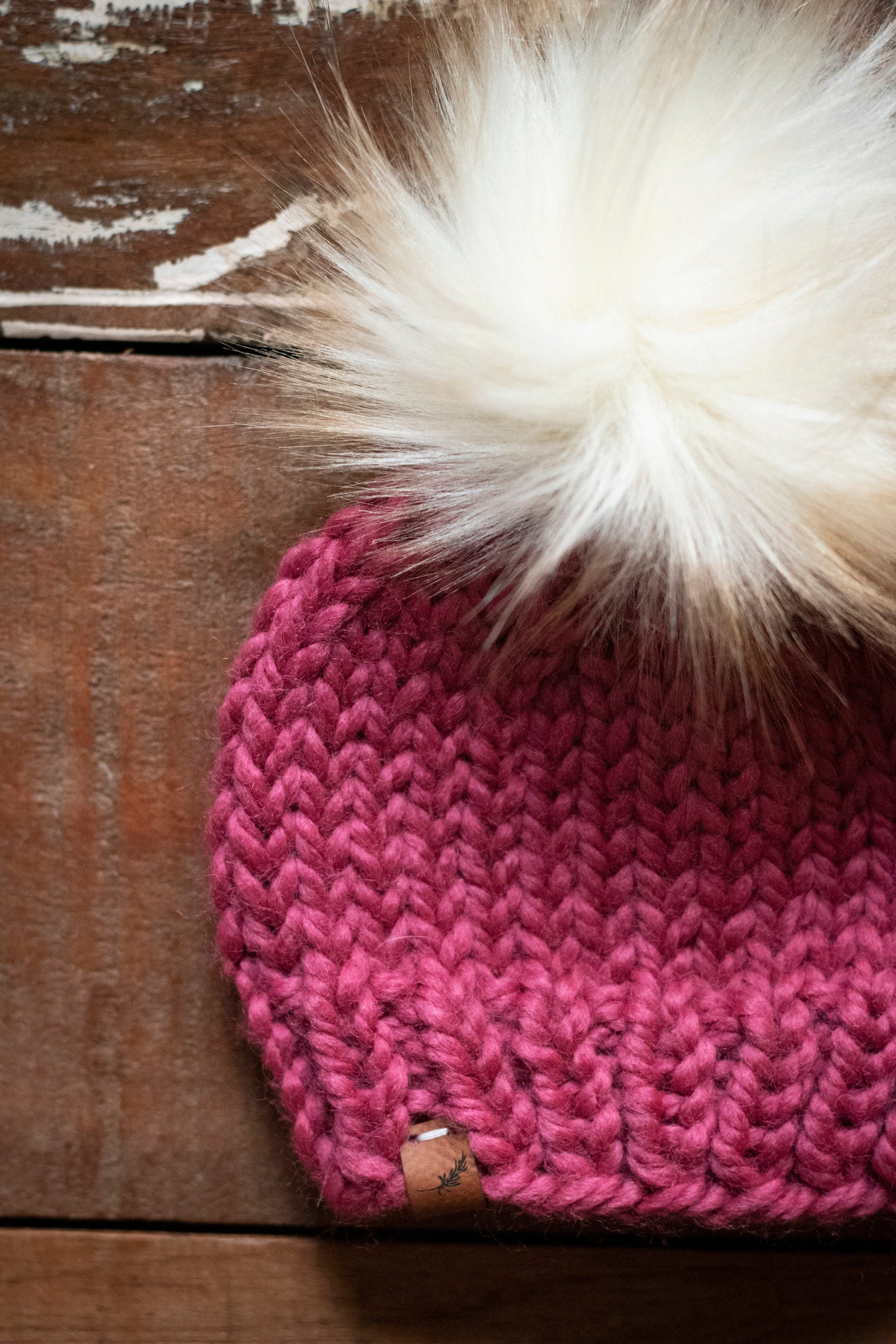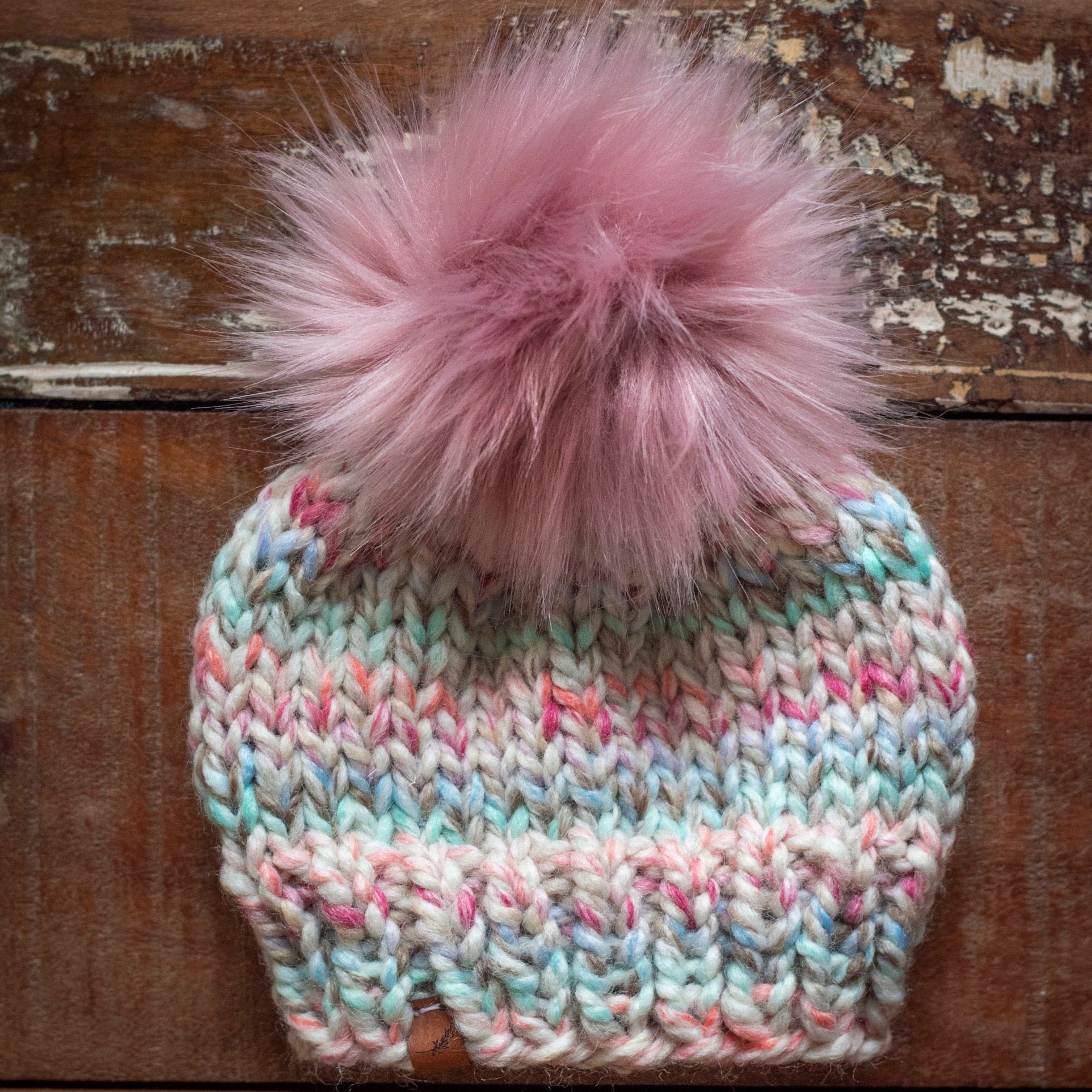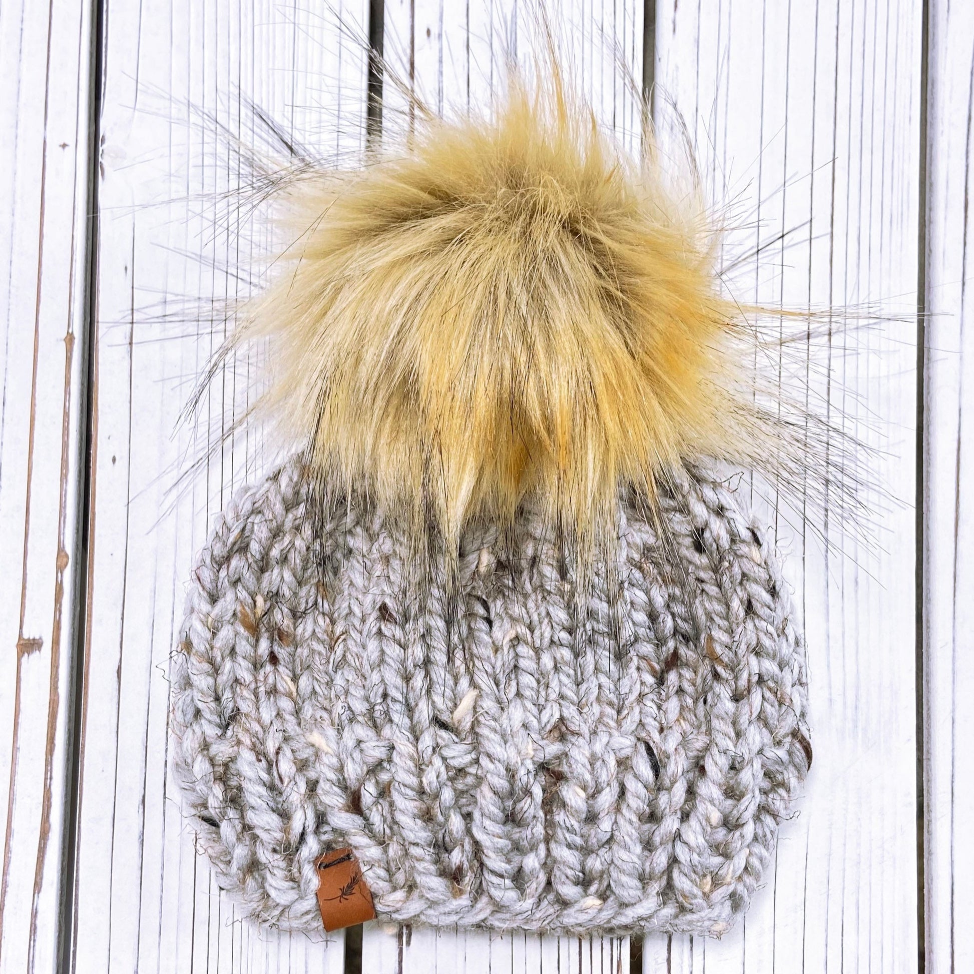A classic knit winter hat you get to personalize with choice of yarn color and faux fur pom! This handmade chunky knit beanie comes in sizes newborn, baby, toddler and child! Makes an excellent baby photo prop, is perfect for sibling or family photos and can also be used in a winter baby announcement!